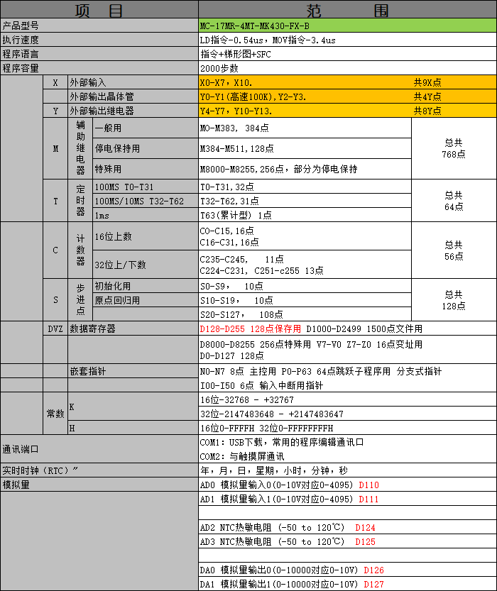 产品选型表