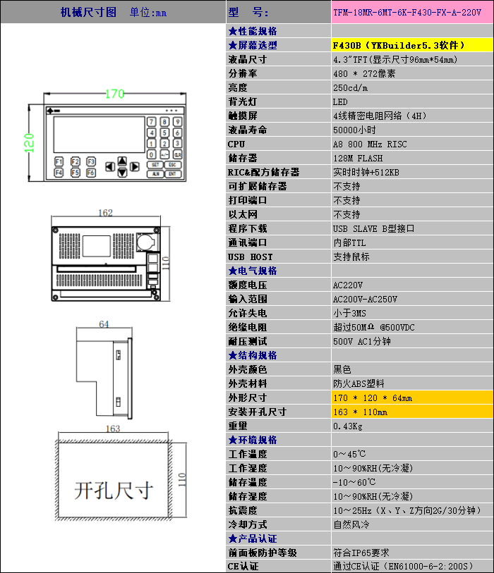 TFM-18MR-6MT-6K-F430-FX-A-220V(经典色)