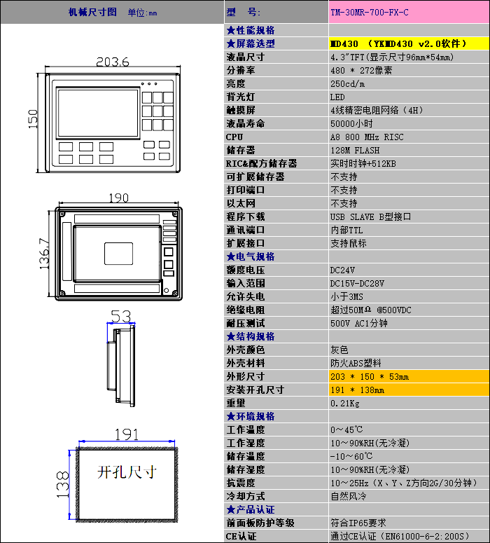 一体机4.3寸
