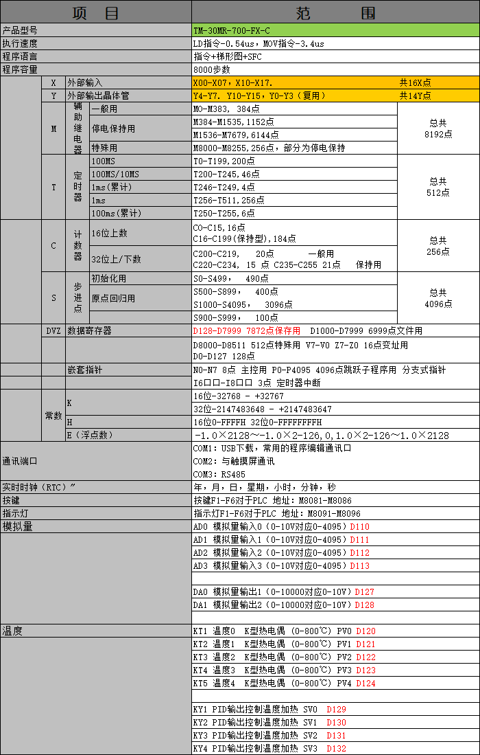 产品选型表