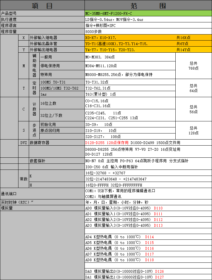 产品选型表