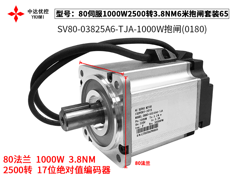 80伺服1000W2500转3.8NM6米抱闸套装65(0174)