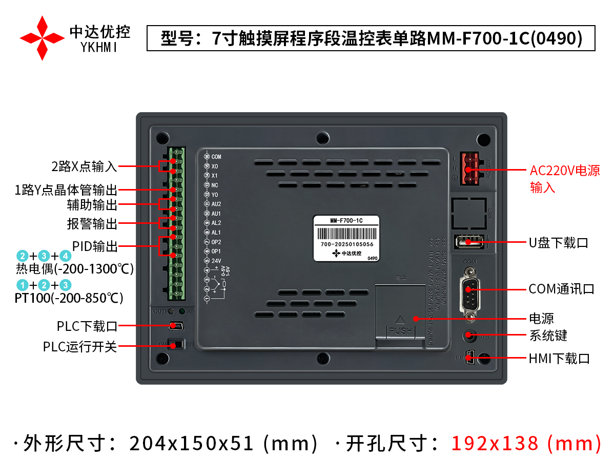 7寸触摸屏程序段温控表单路MM-F700-1C(0490)