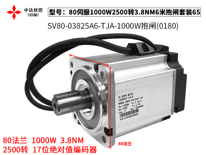 80伺服1000W2500转3.8NM6米抱闸套装65