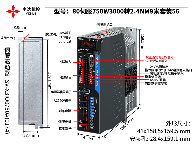 80伺服750W3000转2.4NM9米套装56(0174)