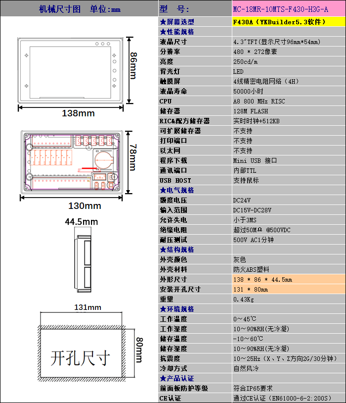 例线程MC-18MR-10MTS-F430-H3G-A(触摸屏、PLC)参考例程下载