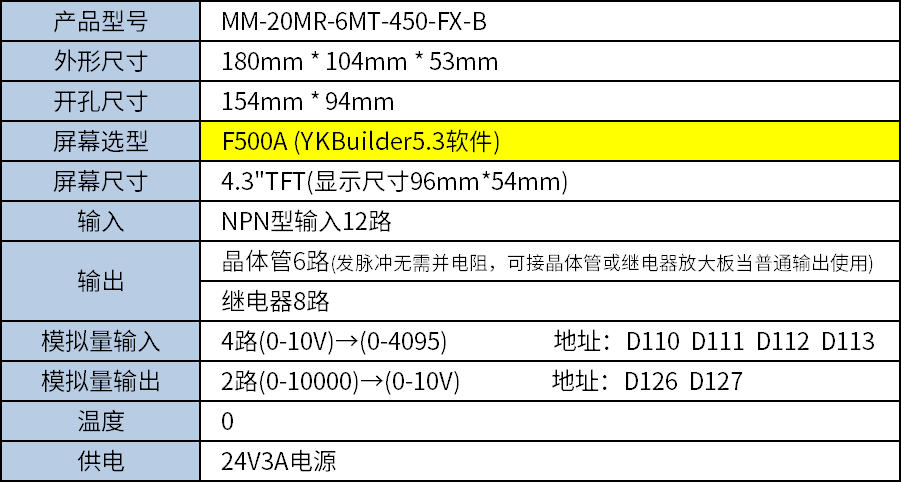 本产品采用24V,75W直流电源供电,含12路继电器输入,6路晶体管输出,8路继电器输出,2路0-10V模拟量输入,2路0-10V模拟量输出