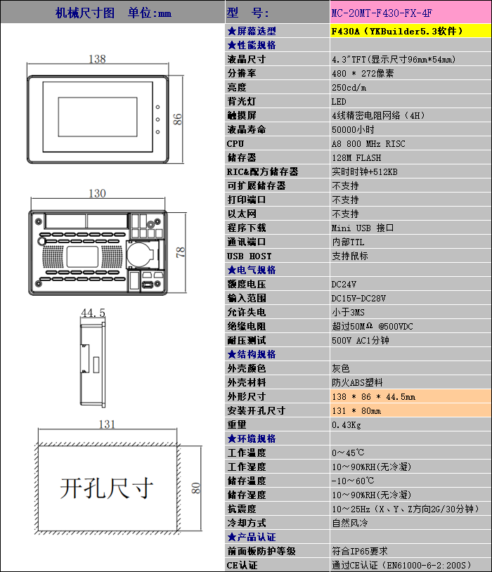 一体机4.3寸