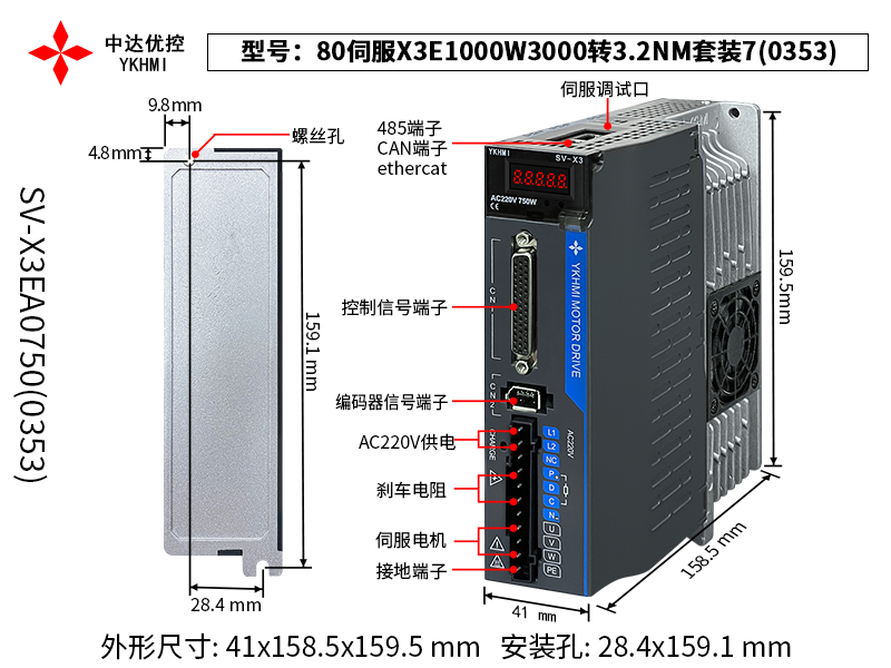 80伺服X3E1000W3000转3.2NM套装7(0353)