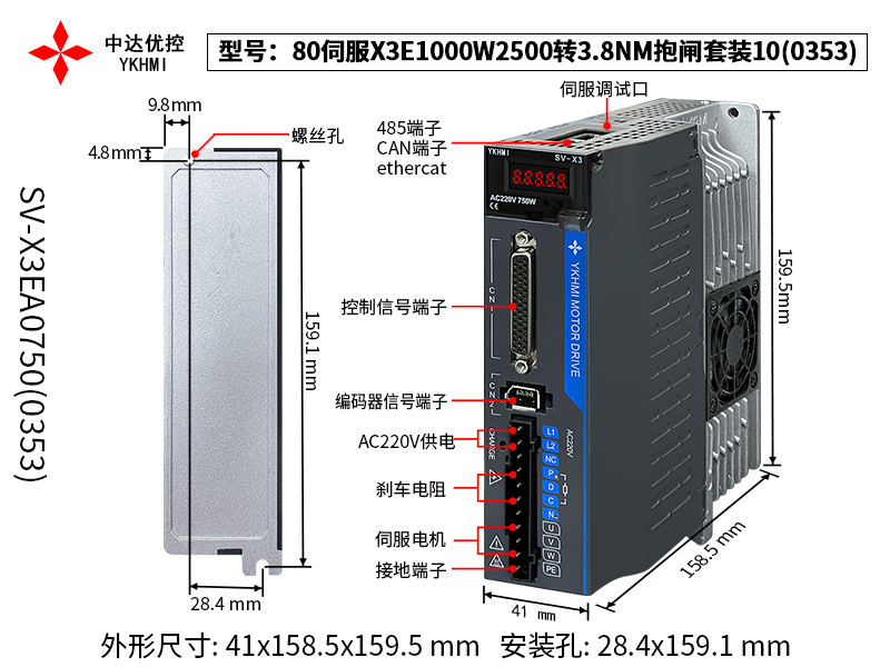 80伺服X3E1000W2500转3.8NM抱闸套装10(0353)