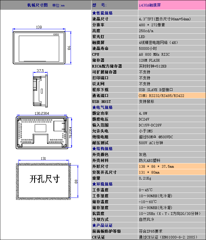 一体机4.3寸
