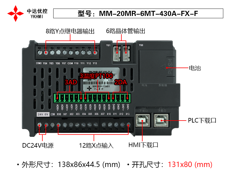 1.支持2路高速输入,2路高速输出; 2.支持3AD,2DA,AD可以改成温度(NTC B值3435);