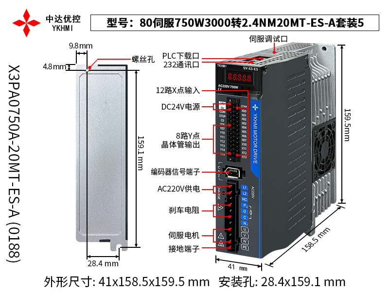 80伺服750W3000转2.4NM20MT-ES-A套装5