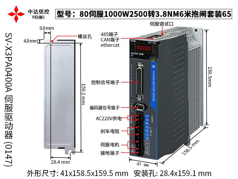 80伺服1000W2500转3.8NM6米抱闸套装65