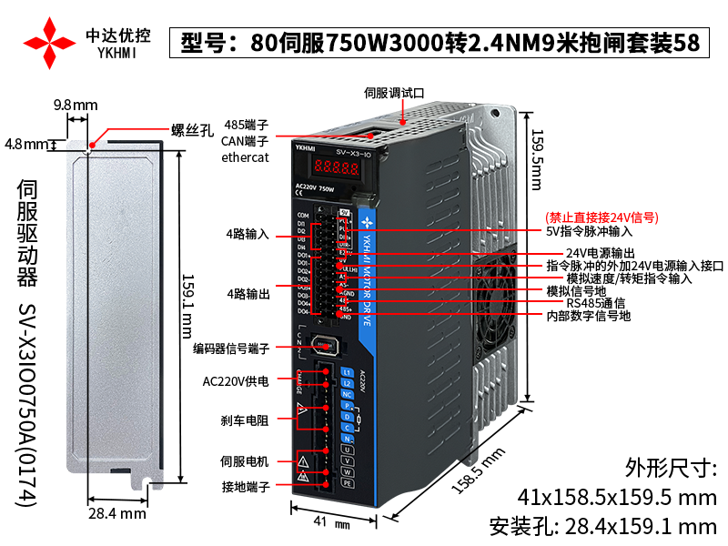 80伺服750W3000转2.4NM9米抱闸套装58(0174)